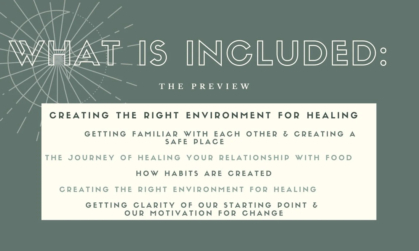 'Join us in the introduction of our a group healing journey for true & lasting transformation in your ways with food…'